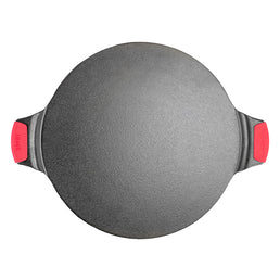 38CM - 15 Inch Seasoned Cast Iron Pizza Pan with BONUS set of 2 Silicone Grips