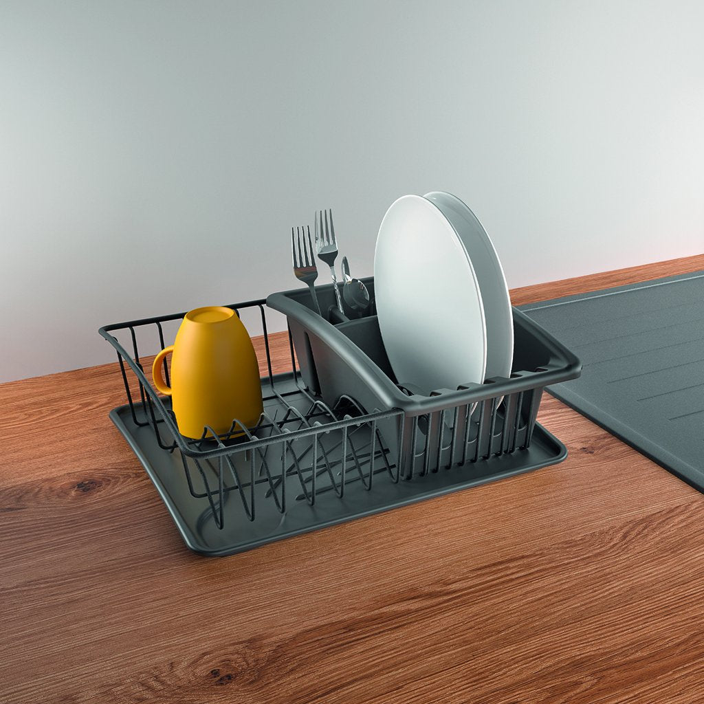 Aquatex Plus Lava Dish Drainer The LAVA Line is the latest addition to the Metaltex line of exclusive coatings. It provides a protective treatment with an attractive wrought iron appearance. - Plates store vertically while drying - Separated storage for...